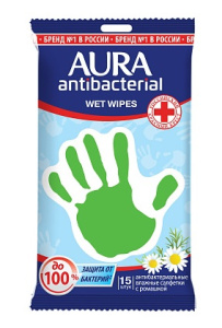 Влажные салфетки AURA антибактериальные Ромашка 15 штук - Бытовая химия и косметика оптом - ТДК