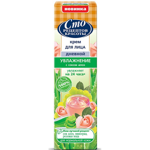 100 рец. красоты Крем д/лица Дневной Увлажнение 40 мл - Бытовая химия и косметика оптом - ТДК