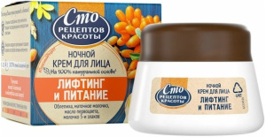 Крем для лица ночной Сто рецептов красоты Лифтинг и питание 50 мл - Бытовая химия и косметика оптом - ТДК